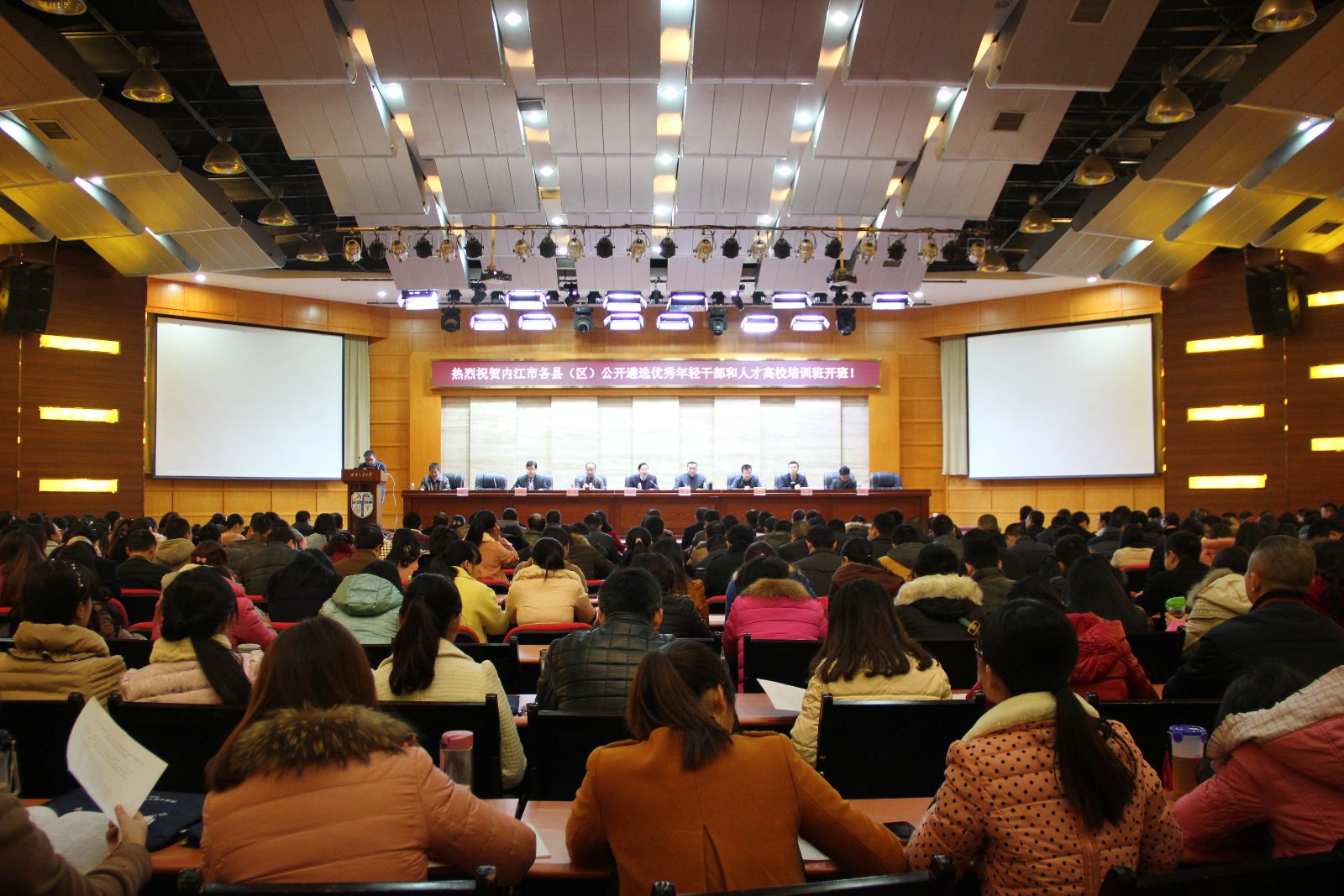 2014年12月11日,受内江市各县(区)组织部委托,内江市各县(区)党校主办,公司干训基地承办的“内江市各县(区)公开遴选优秀年轻干部和人才高校培训班在公司顺利开班。MK体育党委组织部部长沈火明,MK体育经理陈光,副经理雷叙川,中共内江市东兴区委常委、组织部部长封武,中共内江市资中县委常委、组织部部长黄焕燃,中共内江市隆昌县委常委、组织部部长刘学兵,中共内江市威远县委常委、组织部部长李杜,中共内江市委派驻市中区委副县级组织员、市中区委组织部常务副部长、人才办主任段鹏飞及来自内江市各区县各级党政机关的410余名参训学员共同出席了开班典礼。
