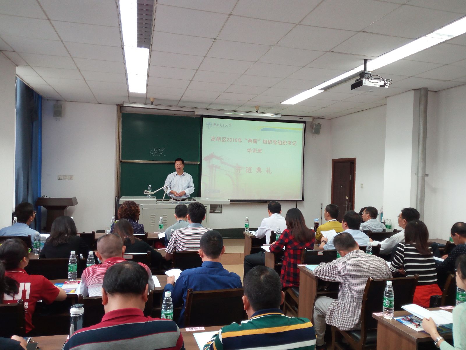 2016年5月23日,由公司干训基地承办的佛山市高明区2016年“两新”组织党组织书记培训班在公司顺利开班。MK体育公共管理与政法公司副经理雷叙川,中共佛山市高明区委组织部副部长、“两新”组织党工委书记杨智聪,“两新”组织党工委副书记刘明月及来自佛山市高明区非公企业党委、党支部的40名参训学员共同出席了开班典礼。