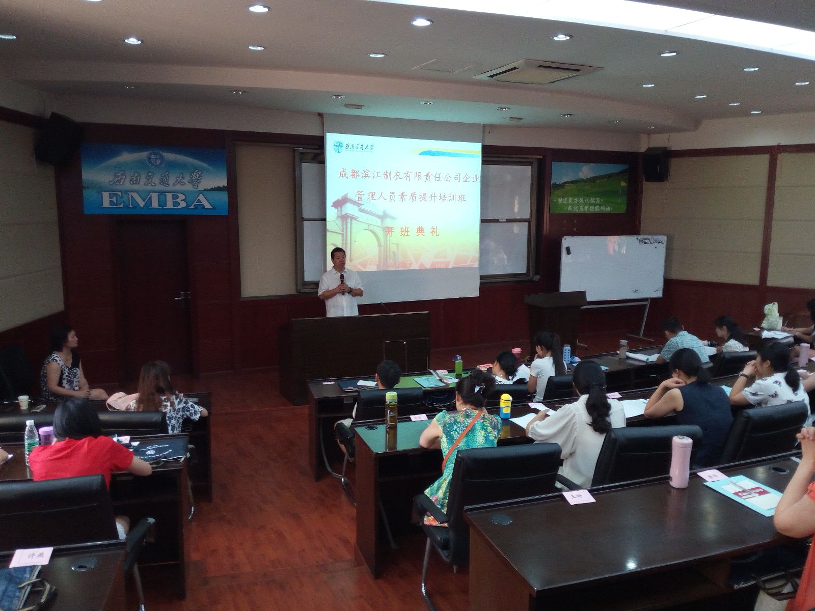2016年6月20日,由公司干训基地承办的成都滨江制衣有限责任公司企业管理人员素质提升专题培训班在公司顺利开班。MK体育公共管理与政法公司副经理雷叙川、成都滨江制衣有限责任公司党委书记李文莉及来自成都滨江制衣有限责任公司的60名参训学员共同出席了开班典礼。