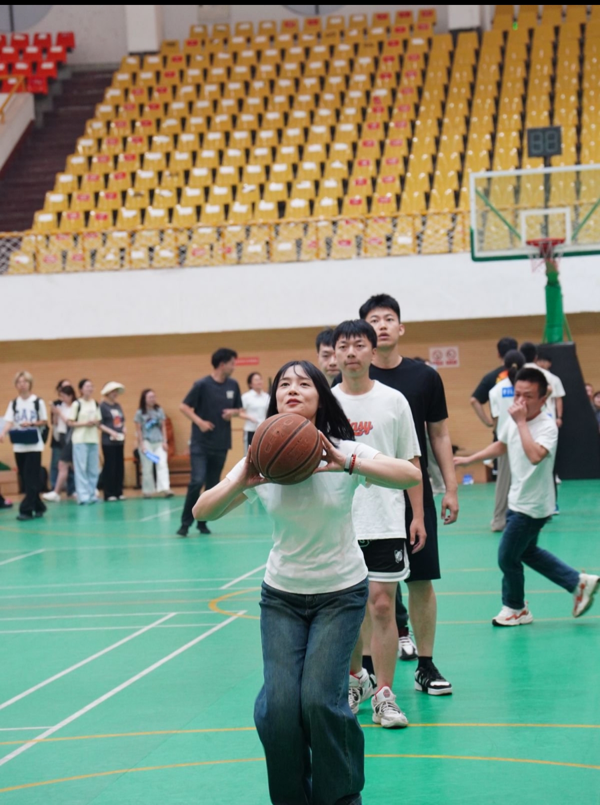 “蛇投争霸”投篮赛里,各队的参赛球员全神贯注,稳站罚球线,沉稳出手、球应声入网,篮球在空中划过一道道美丽的弧线,精确的投篮展示了个人技巧与心理素质的完美结合。