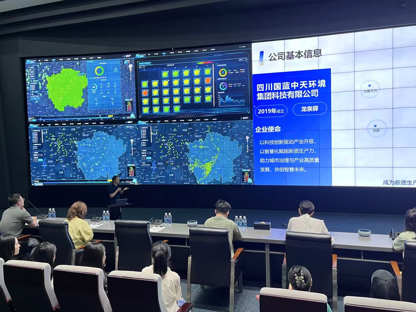 2025年5月25日上午,在公司吴件老师的带领下,2024级MPA研究生前往成都经开区大气智能大数据监管中心开展实地调研,此次调研聚焦“科技赋能环境治理”主题,通过数据平台观摩与专家座谈,探索公共管理创新路径,为区域生态治理提供实践参考。