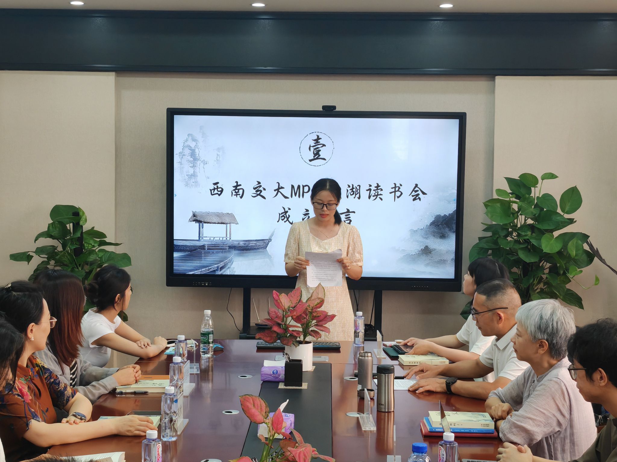 活动伊始,MPA员工代表周艺璇宣读成立宣言,镜湖读书会正式宣告成立,以“镜湖”为精神意象,强调以史为鉴、深耕优秀传统优秀文化。特别援引苏轼“为国不可以生事,亦不可以畏事”的务实精神与“守其初心”的价值坚守,致力为推进国家治理现代化贡献交大智慧。字里行间激荡着交大人“竢实扬华”的使命担当,赢得现场热烈掌声。