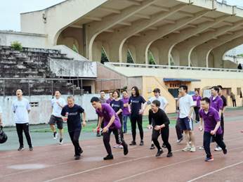 本次迎校庆活动分为线上和线下两个部分,由公司领导代表携MPA2020级员工、员工代表、教职工代表等分别组成六支队伍参与。在青春洋溢的开场舞氛围带动下,大家情绪高涨,高凡书记作为公司教师代表“旗胜队”领队,为此次欢乐行活动致辞,“希望大家在此次活动中团结合作、努力拼搏,秉持‘友谊第一,比赛第二’的体育精神”,并预祝活动圆满成功。