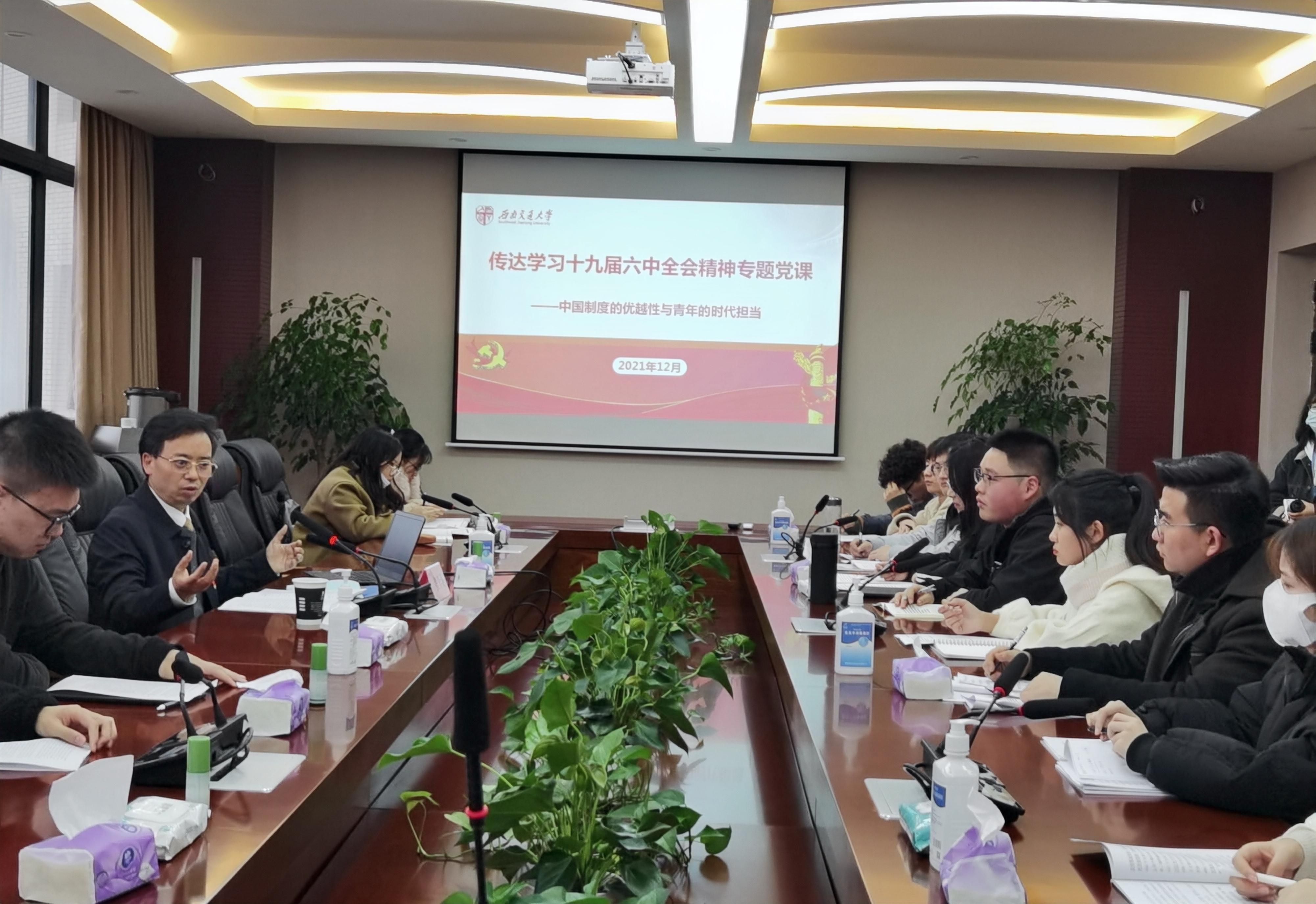 回望党的百年历程,历史进程与思想进程总是交相激荡。在过去,中国共产党先后做出两个“历史决议”,统一了全党思想,维护了全党团结;时至今日,党的十九届六中全会通过了一份“百年总结”——《中共中央关于党的百年奋斗重大成就和历史经验的决议》,这份决议释放出了一些新的信息。据此,MK体育本科第二党支部于2021年12月9日下午4时开展了十九届六中全会精神的专题学习会。本次党课特别邀请到了MK体育党委副书记、纪委书记张学龙老师作为主讲嘉宾,与同学们一起深入学习会议精神。