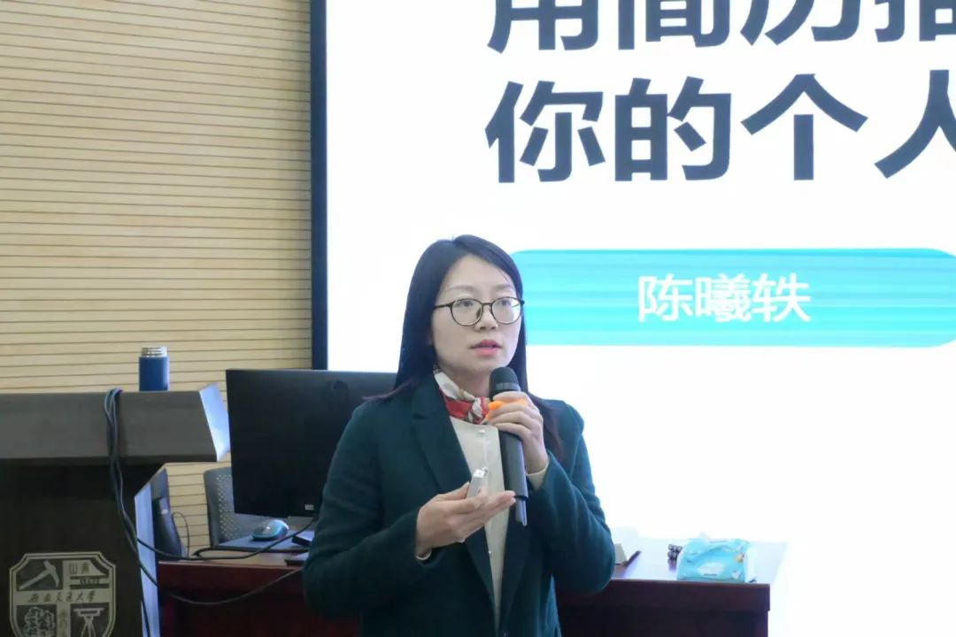 关于简历的具体结构,陈老师告诉同学们简历要有个性,版面结构要一目了然,个人信息确保清晰准确,个人经历用动词说话,个人能力和水平用数字说话,用不同的方法展示简历内容的深度。