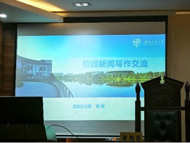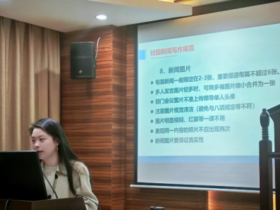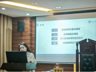 其次,张哲老师分别从四部分对新闻写作规范和技巧进行详细讲解与授课:一是新闻稿写作基本要求;二是新闻稿基本框架;三是四大题材的写作应对技巧;四是校园新闻的写作规范。在讲解中,张哲老师还加入了许多新闻案例,让这次的培训讲座更加通俗又生动。