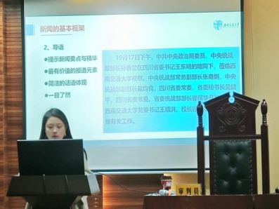 紧接着,张哲老师用一幅明白晓畅的思维导图展示出新闻稿的基本框架结构,并结合过去的新闻撰写案例介绍了标题、导语、正文和结尾的写作注意事项与要求。针对标题和导语部分,写作人一定要开门见山、简明扼要,直接概括出新闻的主要内容,体现核心价值要素;在撰写正文时,要详细叙述事件过程,可以加点“佐料”使新闻更具吸引力;而在结尾部分,老师建议可以用评论性语言对新闻事件进行总结、评价和价值升华。