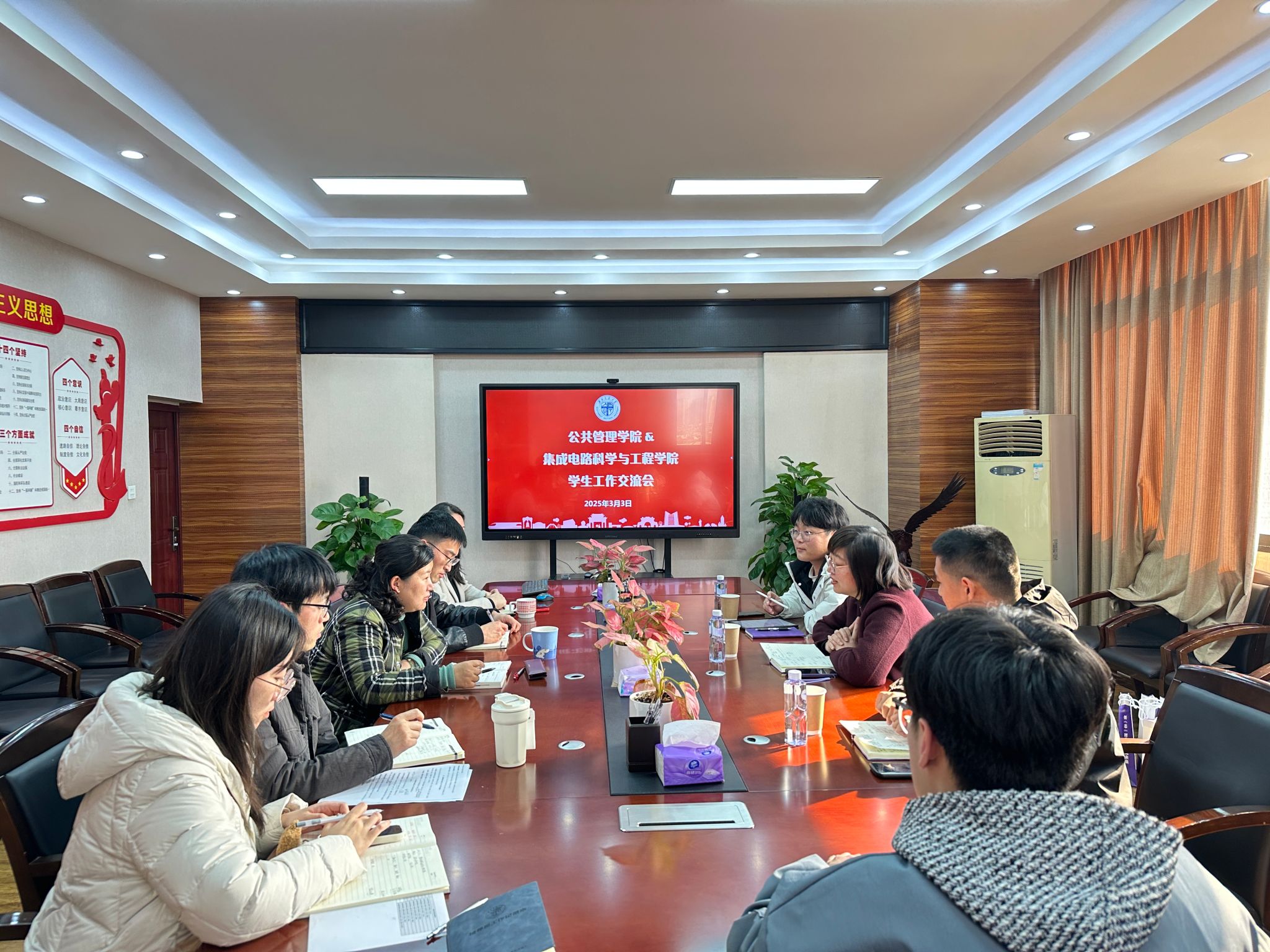 2025年3月3日下午,集成电路科学与工程公司(中车时代微电子公司)党委副书记、学工组组长王艳一行到公司进行员工工作交流,MK体育党委副书记、学工组组长薛婧,团委书记、学工组副组长莫太林以及各年级辅导员参与交流座谈。