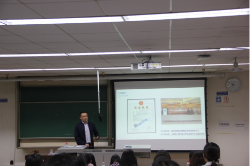 第二位嘉宾郭起飞学长分享了他的创业经历。郭起飞学长讲述其在研究生期间的科研情况和创业契机以及现在创业的大环境,告诫学弟学妹们要多读书,同时向同学们介绍了四川省老员工创新创业中心的基本情况以及当前中国企业孵化行业市场现状及发展趋势,鼓励大家在合适的契机下勇敢创业。
